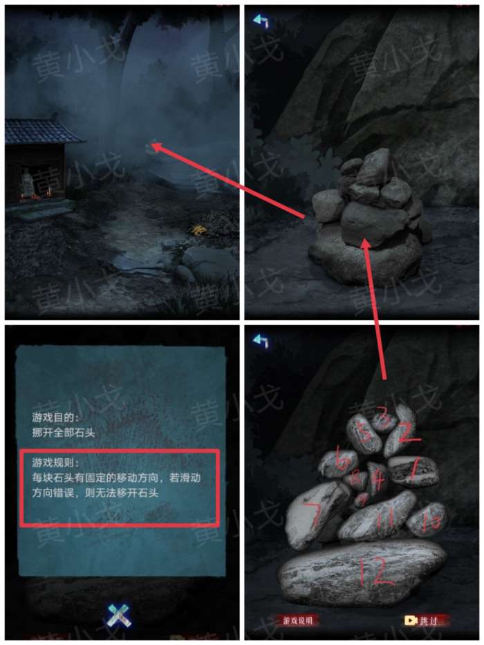 每块石头有固定的移动方向,若滑动方向错误,则无法移开石头。