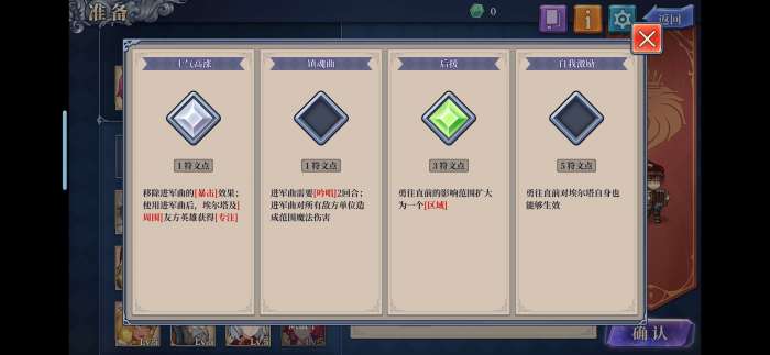 其他要点:之所以选这四个角色,是因为他们生命值都很低,护盾量却奇高。而在黑暗法典+零式战甲的打法下,生命全都是1.我们是完全不需要生命的,反而是护盾越高越好。再者,这四个角色也那么恰好就能提供三个心符文,让梅丽莎刚好就能放技能。武器用元素赞歌没有别的意思,完全是因为它附魔运气比较好。剩余一个饰品用的指南针,可以多加一张指令卡,提高容错率,也可以用其他。