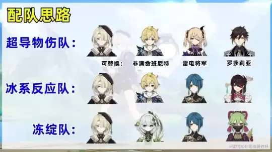 物理伤害玩法的配队主要依靠冰冻、冰碎和超导来提升菲米尼的输出。核心的操作方法是使用元素爆发后,进行三次EAAAA攻击,以提升输出效果。