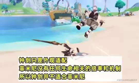 尽管PV中使用了钟剑,但是菲米尼的攻击并没有任何基于敌方生命值的加成,因此除了外观匹配之外,菲米尼并不适合使用钟剑。