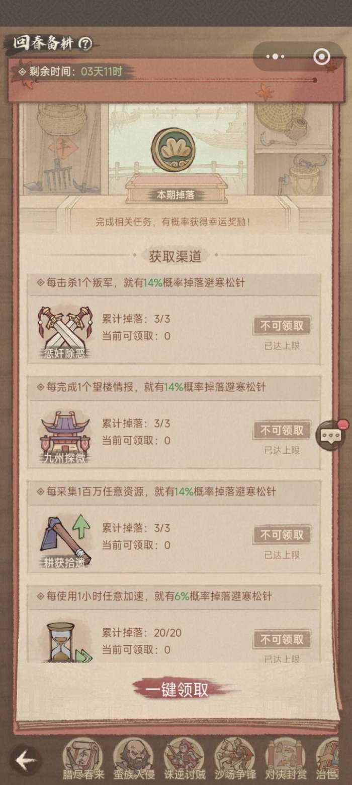 5. 回春备耕:随机掉落,总共能拿29个宝钱。