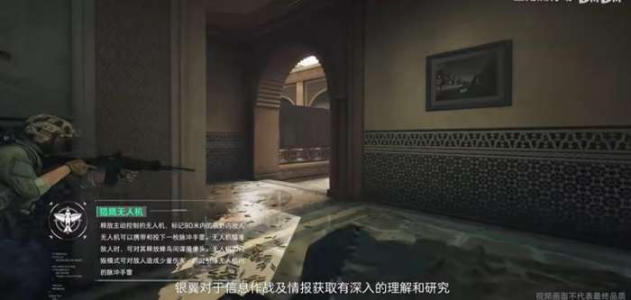 银翼的标志性装备之一是猎鹰无人机。这种无人机可以标记80米内的视野内敌人,并且能够携带并投掷脉冲手雷。当无人机锁定敌人时,可以释放蜂鸟间谍摄像头,对敌人进行精准的监视和追踪。这一技能使得银翼在信息收集和战场控制方面具有极大的优势。