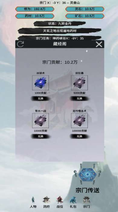 比如,攻打丹道门成功,就可以在宗门兑换丹药,获得丹道门的技能。