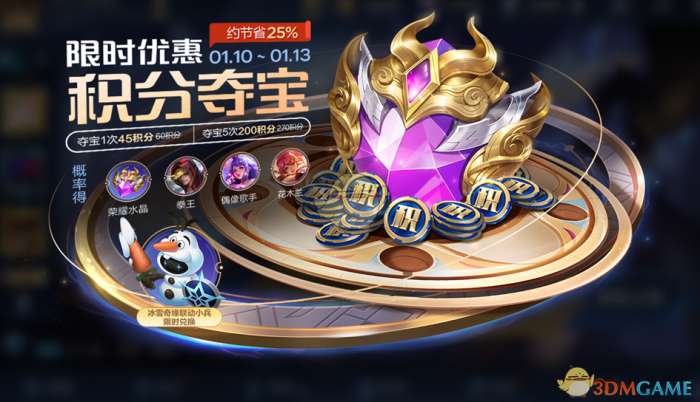 积分夺宝打折活动时间:1月10日0:00-1月13日23:59