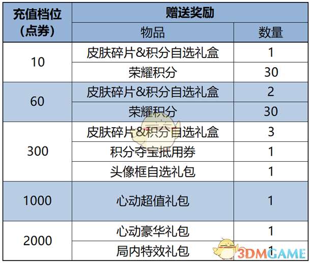 皮肤碎片&积分自选礼盒:打开礼包可任意选择以下奖励之一:荣耀积分*10或皮肤碎片*1