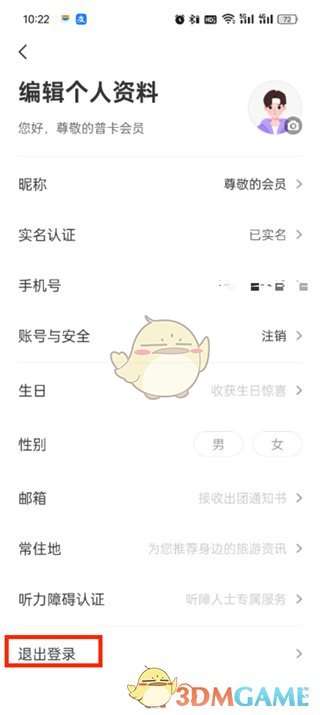 3、接着来到编辑个人资料的页面中我们点击下方的【退出登录】;