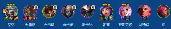 2、3杠2拉6才开始d牌,低费全部二星后可以停手吃50利息慢追尼蔻和艾克三星,艾克三星了就可以上慢慢上人口,中间解锁奈德丽和斯卡纳,7级把尼蔻d出三星,后续上八补全体系牌的二星即可大成,有机会上9补吉格斯上限会更高(芬妮装备换给他