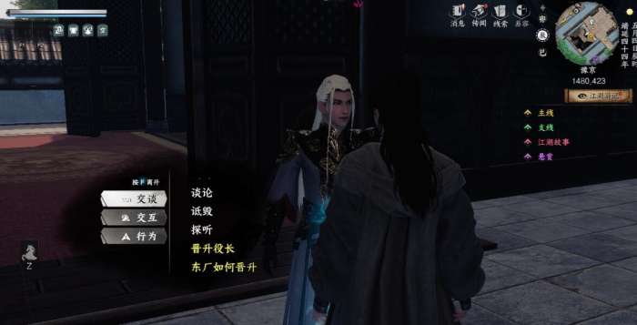 玩家顺利的离开了地牢之后,才能够开启东厂的路线。这时候玩家就已经成功的解锁加入东厂的资格,此时玩家就需要来到东厂,找到曹公公之后,再跟曹公公进行对话,对话完成之后,代表玩家这时候可以正式的去加入东厂的势力。其实玩家加入东厂的势力之后,还需要不断的去培养,去完成任务,要提高东厂的好感度,这样玩家才能够慢慢的提升,最终挑战掌门之位。不得不说,玩家在晋升的路途当中需要拒绝曹公公的给玩家开出的条件,而玩家在这样的情况下也需要做到的就是成功的将曹公公给打败。