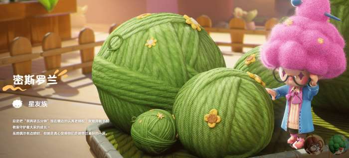 蓬瑟是星友族里目前最有存在感的角色。它是个害羞的粒粒,经常躲在草丛后面,路过的玩家一靠近,它就会小声提醒"小心脚下"。被发现的时候,耳朵会变红,整个人往后缩。但就是这样一个看上去胆小的粒粒,其实默默记住了所有朋友的小习惯,知道哪个粒粒喜欢什么,哪个玩家今天心情不好。陪你看流星、听你说悄悄话,这些事它都愿意做。另一个角色梵嘀是星友族的艺术家,会画画,喜欢把小人国里的好看瞬间记录下来。还有一个叫密斯罗兰的粒粒,有着紫色的头发,是老师的形象。