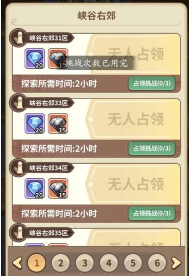 峡谷占领这个玩法每天都可以玩,这个模式有三次挑战机会,将所有挑战次数用完以后可以获得很多的资源,但是挑战难度也存在很多的区别,这里就讲解一下如何选择合适的挑战难度
