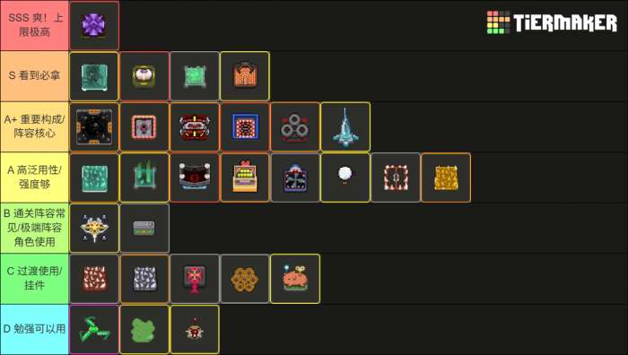 S:成形爽度高,强度高,泛用性高,拿到的话,通关率高