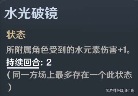 这个技能可以让被附属水光破镜的角色,受到的水元素伤害+1