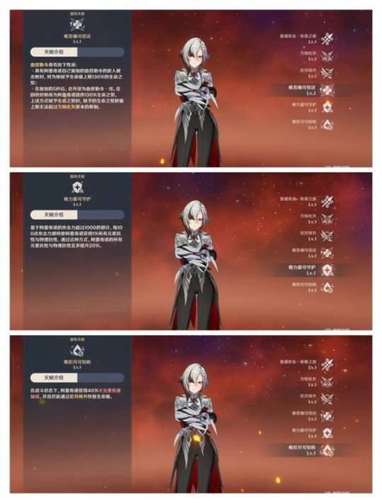 基于阿蕾奇诺攻击力超过1000的部分,每100可提升1%所有抗性,最多可提升20%(3000攻击力)。