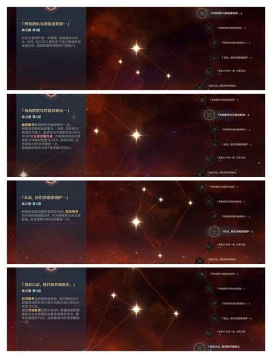 一命:【红死之宴】的额外提升100%的伤害增幅,【红死之宴】状态下的普通攻击和重击额外获得抗打断。