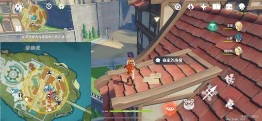 在西风骑士团斜对面屋顶,交互获取“商家的海报”