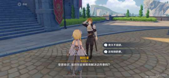 来到蒙德城西风大教堂前的广场上,跟巡逻的阿拉米对话,获取任务