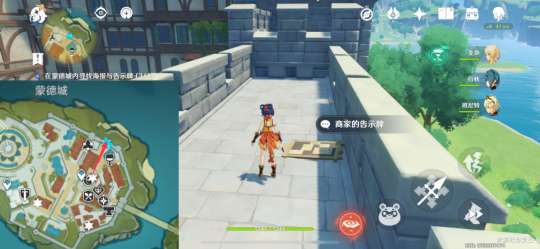 在蒙德城西门城墙上,交互获取“商家的告示牌”