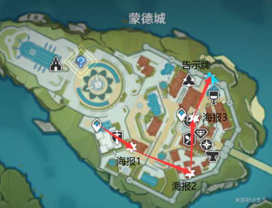 找齐后,返回广场,交付三张商家的海报给阿拉米