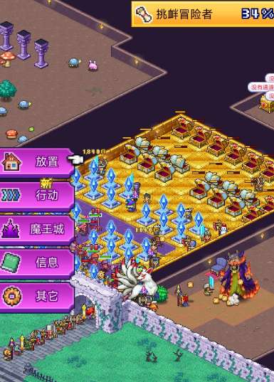 关于魔王本体保护策略:初期可将“魔王宝座”暂置小型隔间内,待魔王入场后,立即使用墙体或陷阱封闭该房间出入口,随后移出宝座并重新安置于更深层位置。此操作可彻底阻断勇者直攻路径,特别适用于魔王等级偏低或遭遇高战力勇者突袭的情形。随着城堡扩建进度推进,魔王宝座需持续向地图最深处迁移,避免早期被突破核心防线。同时,在核心区域外围环形部署高阶怪物单位,形成动态缓冲防线。