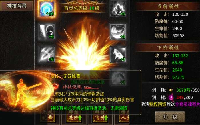 一般投入了龙魂草之后,角色在属性效果上面会获取最高5000点的切割数值,当然如果大家有额外投入千年灵芝之类的资源,在这里对于角色来说转生后带来的防御点也会有最高1000点的提升效果,包括其中九转还魂丹也是可以喂给角色的,此时对于玩家需要的生命数值来说提升的最高点数有1万点,所以我方如果需要足够的生存提升效果,在这里转生的时候还可以投入足够多的九转还魂丹,那么其次,大家在战斗过程当中有转生的属性作为基础的情况下,后期还可以通过不同技能效果来升级角色可以带来的战斗能力,这里大家可以给角色装备的各个神技是有不同能力的,一般在给角色进行升级的时候是不会为技能随便带来其他的等级提升,而是要单独给不同的技能进行加点提升。