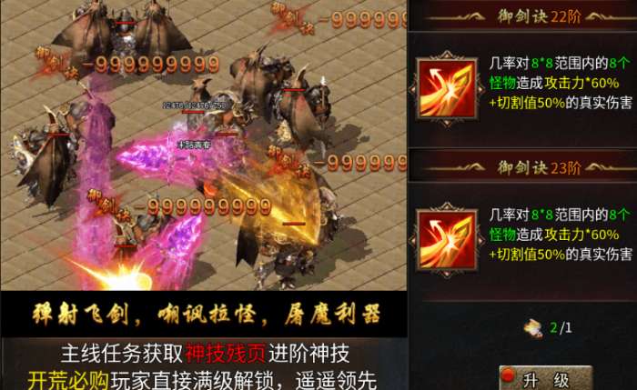 这里一般在给技能升级的时候需要用到的是神技残页,这个残页同样是前期大家通过挂机可以在大部分的地图当中获取的,包括很多的副本都是可以拿到神器残页的,在其中大家不管给什么样类型的技能进行升级,这里对于神器进阶来说的话,一般是针对他们打怪时候创造的攻击以及切割数值,这样带来的真实伤害其实提升效果都是比较大的,比如大家如果玩的是战士这个职业的话,在其中有一个御剑诀这个技能就是比较。核心的技能,在他基础阶级的时候,可能攻击力还没有那么高,后期在得到足够的残页投入以后,他的攻击能力效果上面每提升一级就会有足够多的百分比,让他攻击能力得到提升,那么这里主线任务当中一般给大家的进阶材料是比较多的。