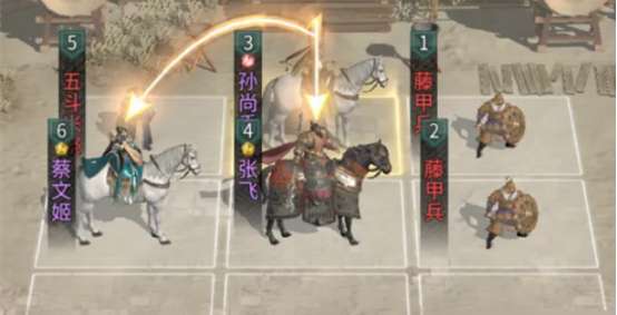 这三位武将都有各自的优势,如果巧妙搭配在一起,那简直就是首屈一指,可实现全方位的高度协同,包括续航力或者是压制力等等。不论在什么样的战役当中适应能力都特别卓越,但是在合理排兵布阵的时候,大家需要考虑清楚,比如其中的蔡文姬和张飞可以成功避开追击格,那么这样的合理搭配最大的优势就是整个行动的节奏相对来说特别稳定。而孙尚香却需要放置在这两种人物角色的追击格之内,就能够触发联动的效果。