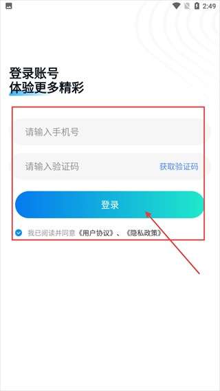 1、先在【请输入手机号】输入框填写手机号,点击【获取验证码】,勾选协议后点击【登录】。