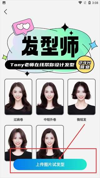 软件提交 专题合集 热门手游星语相机app怎么用,进入首页后,能看到【滤镜大师】相关功能区域,选择自己需要的,比如:点击【换发型】选项,在【发型师】页面,可查看【过肩卷】【中短外卷】等发型样式,点击【上传图片试发型】按钮。
