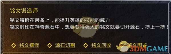 铭文系统专属NPC在庄园内,点击之后有以下几种板块