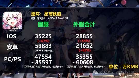 有关原神崩铁三月流水对比!通过对比可以看到崩铁最近几个月的流水都比原神高了,难怪米哈游天天推流轨道,原确实爆米拉太多!原神最近确实不行,崩铁反而蒸蒸日上,而且原要开仆人池了,不知道卡池流水能有多少,不好说,毕竟仆人正好撞车隔壁砂金up,4.7芙宁娜复刻又撞车流萤up,目前原神的情况非常不乐观,即将到来的5.0纳塔原型二次元三次元热度都不高,再这么下去,原神成副游指日可待啊!