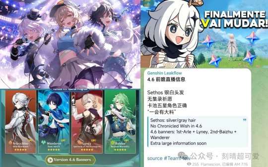 各位大佬好呀,一起来看看今天都有哪些值得关注的信息吧!随着4.6前瞻在今晚直播,有内鬼直接放出了有关4.7卡池的一些消息,新角色分别为克洛琳德,希格雯,赛托斯!本月22号就会官宣这三位角色的立绘图!并且更有内鬼晒出了4.7的前瞻封面,真是太离谱了!不过卡池安排已经明确了,上半 希格雯+芙宁娜,下半克洛琳德+莱欧斯利!