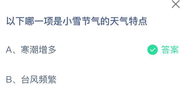 以上就是以下哪一项是小雪节气的天气特点,支付宝蚂蚁庄园2025年11月22日答案最新,更多精彩内容,请点击关注pk游戏网更新!
