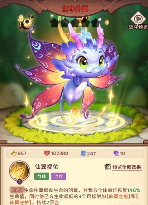 后手治疗:生命扑翼(恢复队友血量,续航保障)