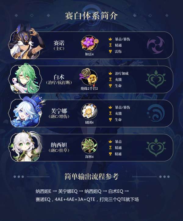 「芙宁娜」的体系非常灵活,可以与多种不同的队伍进行搭配。除了主流组合之外,玩家也可以根据自己的兴趣和偏好自由组队。