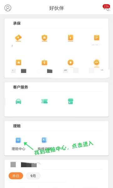 2、登录后,在主界面找到理赔中心功能按键,点击进入。