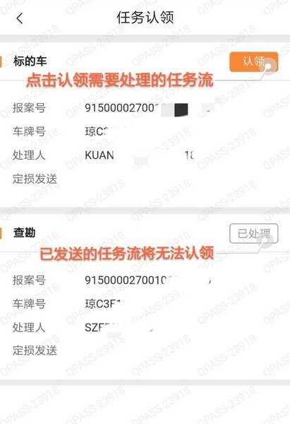 5、点击案件后,进入任务流认领界面,对查勘或定损任务流进行认领操作,如图所示。