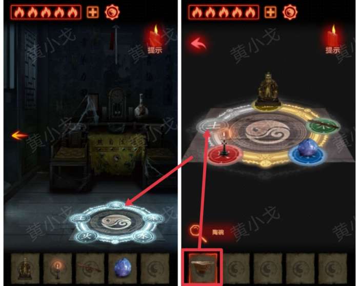 31.点击法阵,插入【桃木剑】,暗门打开,进入密室