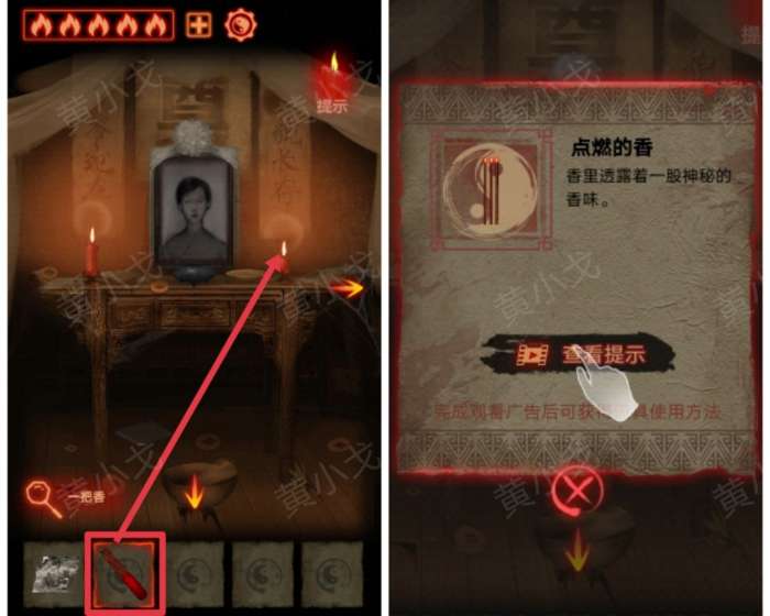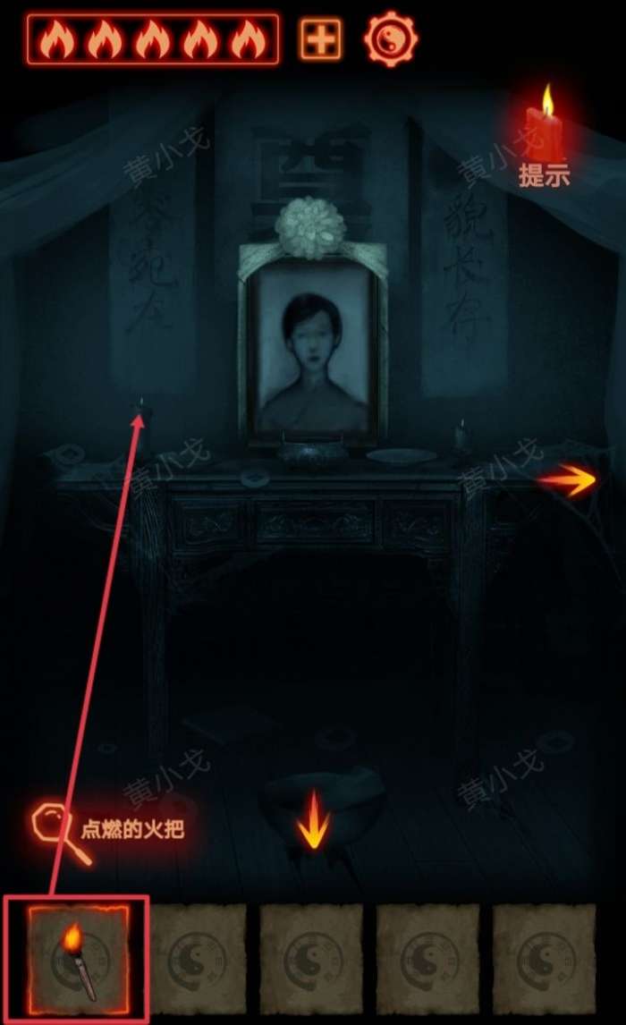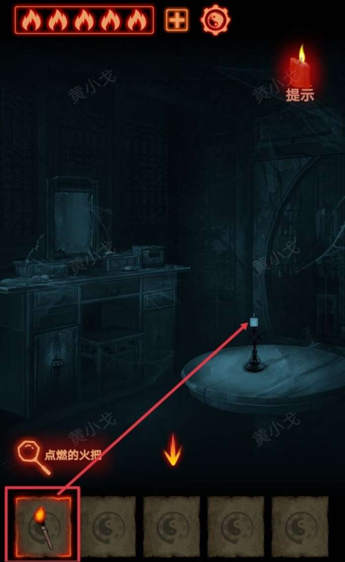 5.(西厢房)用【点燃的火把】点燃桌子上的蜡烛