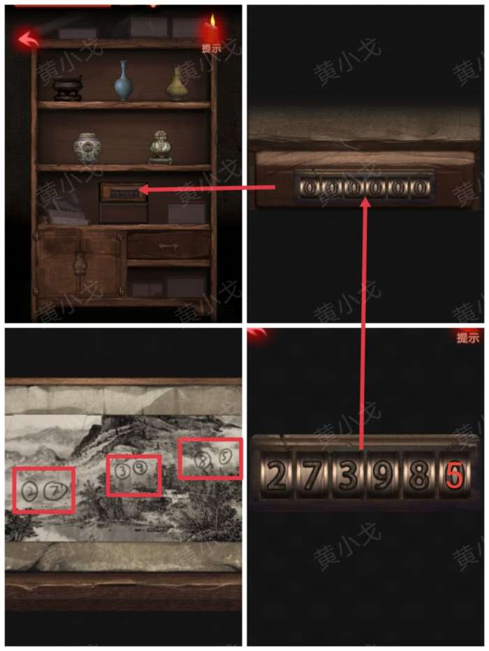 21.暗格的挡板掉落,根据古画上的线索,输入密码:273985