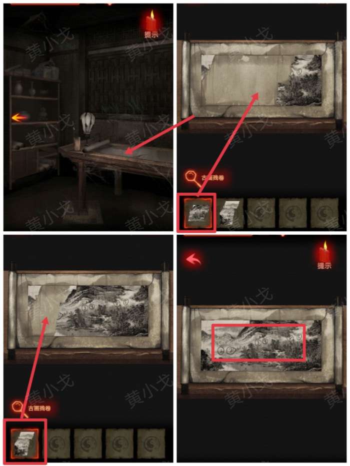 19.(东厢房-右)点击桌子,放上两张【古画残卷】,获得线索(273985)