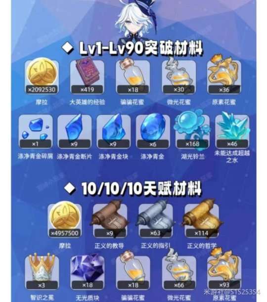 芙宁娜角色培养材料一图流
