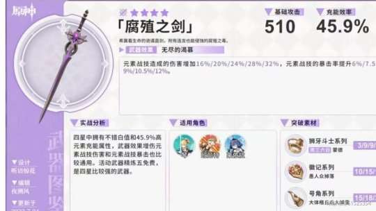 枫丹地区钓鱼协会兑换。提供高额充能效率,优化技能循环,提高元素战技的暴击率,没有腐殖之剑可以考虑使用。(钓鱼的过程会有些漫长……)