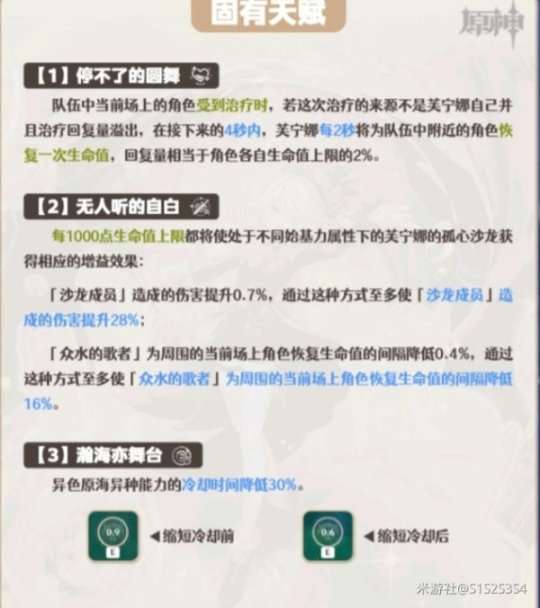 ②无前置条件,直接提高芙宁娜的生命上限,进而提高战技伤害。