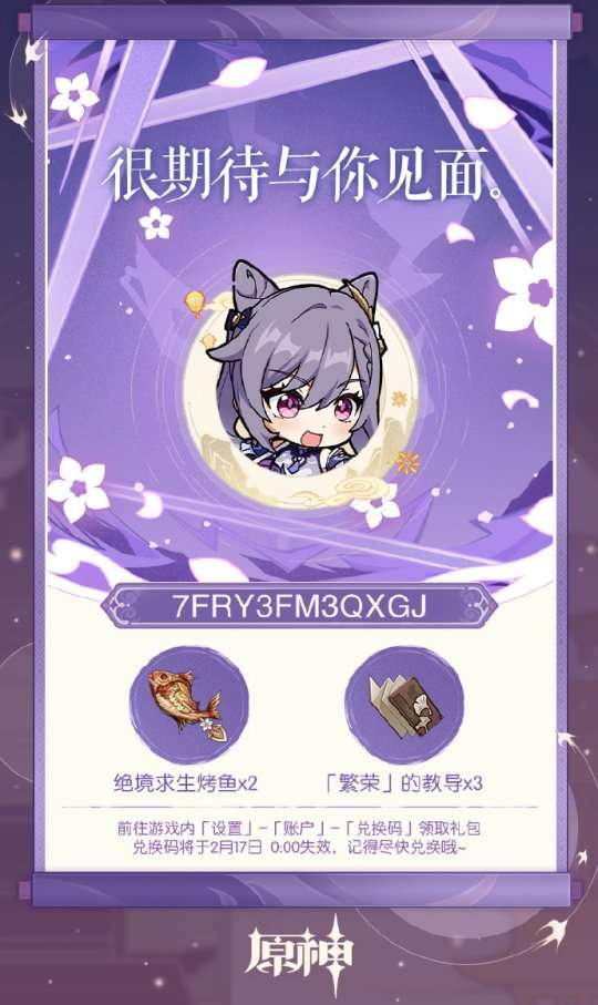 3-兑换码将于2月17日 0:00 失效,记得尽快兑换哦~