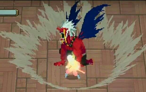 大天狗半蹲在地变身,期间无法被攻击,记住在它变身时不要靠近,不然会被眩晕(下图),拉开较长距离即可