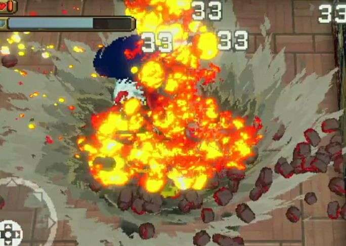 大天狗捶地释放一排三个的岩石,角色可以击碎岩石,避免爆炸