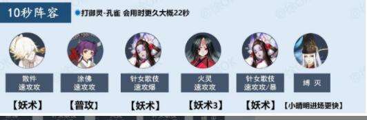 打御灵-孔雀预计22秒,打黑豹时所有式神都要速度>185。