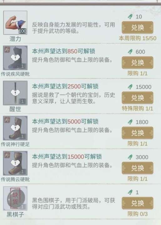 地方志:州地图开启可花费1声望币兑换黑棋子,每州3个。重复出行同州提升声望解锁更多。