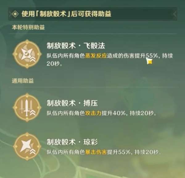 特别助益-对团队的蒸发反应造成伤害55%提升,持续时间为20s。