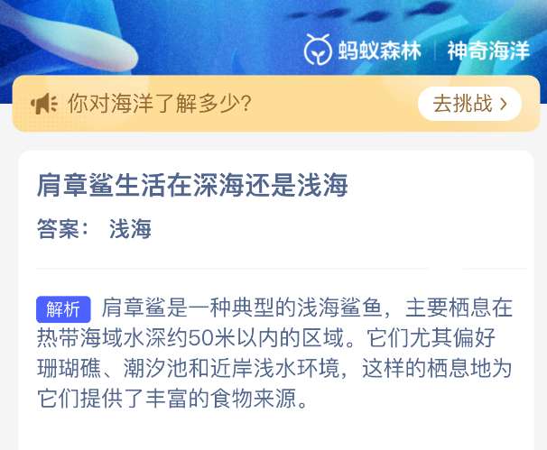 以上就是肩章鲨生活在深海还是浅海?神奇海洋今天答案最新2026年3月23日分享,更多相关攻略内容,请点击关注pk游戏网更新!